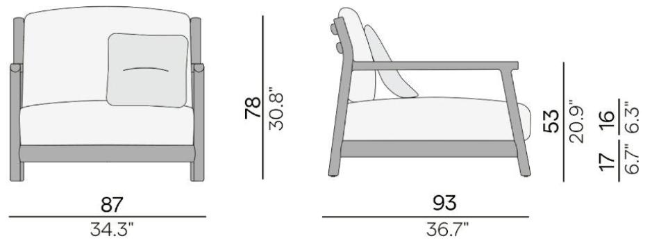 Muyu es un sillón de exterior diseñado por Stéphane De Winter para la marca Manutti. El sillón de exterior Muyu es una excelente fusión de diseño contemporáneo y autenticidad. Su estructura, realizada en teca natural, celebra la belleza inherente a la madera noble, mientras que los cojines del asiento y el respaldo, tapizados en tejido outdoor, añaden un toque de confort y sofisticación.